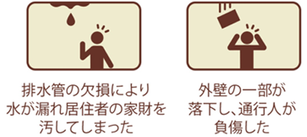 第三者の物を壊したりケガを負わせてしまった場合に賠償責任を補償します。